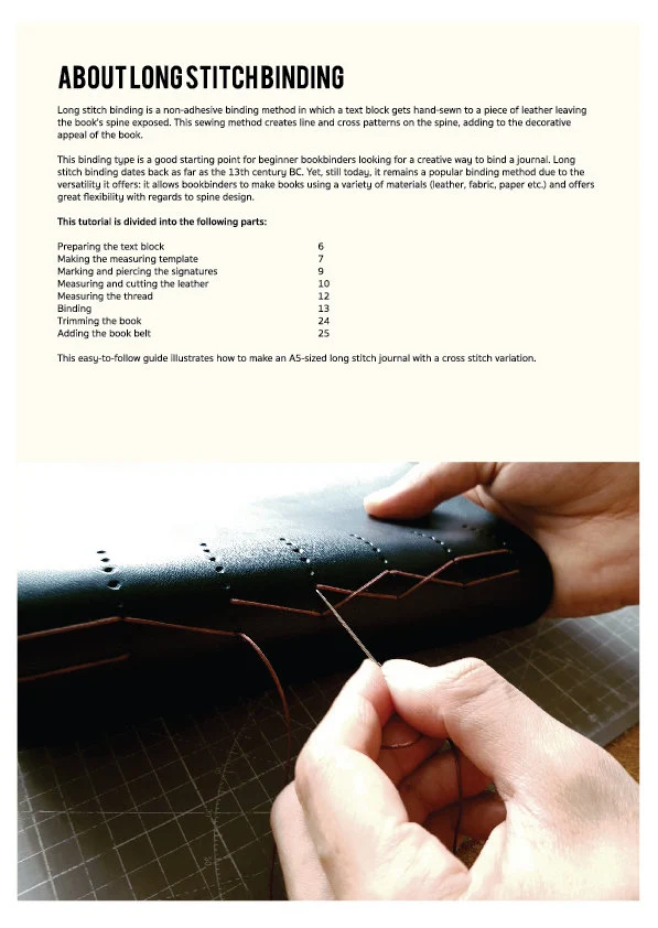 The Long Stitch Binding with a Cross Stitch Variation tutorial showcases a timeless, non-adhesive bookbinding method. Originating as early as the 13th century BC, this technique involves sewing a text block to a leather cover, creating intricate line and cross-stitch patterns on the spine. With the flexibility to use various materials like leather, fabric, or decorative paper, this style lets you create personalized journals, guest books, or photo albums with ease.